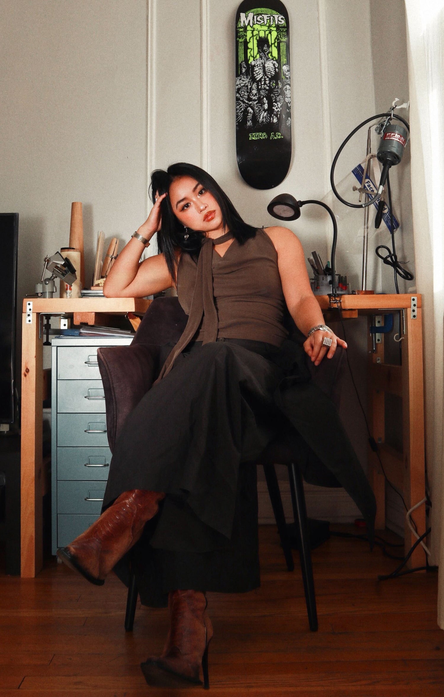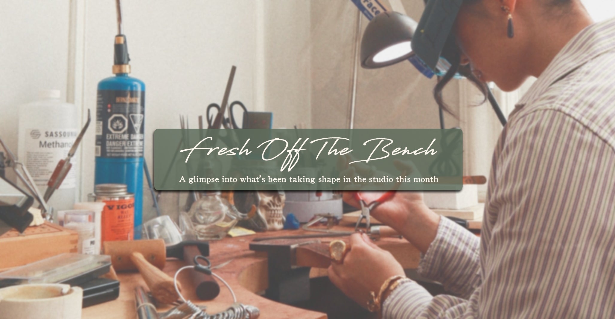 This is me - the face behind the jewelry. I moved to Montreal alone at 17 to study graphic design. After five years in the field, I couldn’t shake the feeling of being so disconnected, until I found jewelry making. At the age of 22, I built my bench in my apartment and carved my first piece.