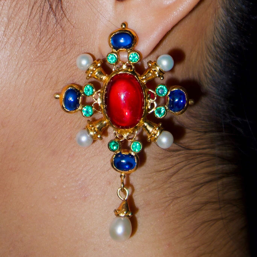 The throne is not a seat - it’s a state of mind. Handmade with lab-grown rubies, spinels and emeralds in sterling silver and gold-plated.